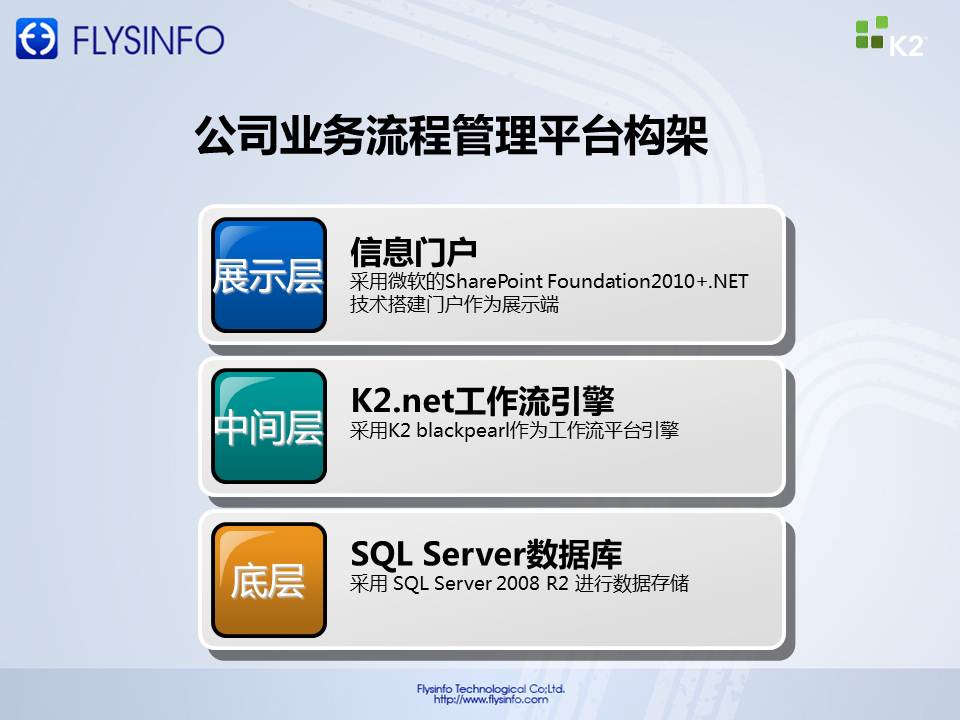 基于以上問題,2011年7月,伊藤啟動BPM平臺選型建設(shè)。通過嚴(yán)格的比選測試,最終選擇了K2作為BPM平臺,全面實現(xiàn)伊藤協(xié)同辦公及業(yè)務(wù)整合。成都飛逸提供系統(tǒng)實施服務(wù)。