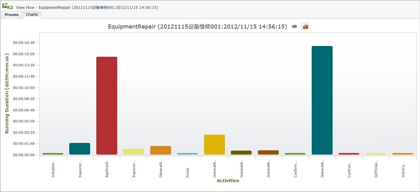 流程實例效率分析柱狀圖——以柱狀圖的方式展現(xiàn)當(dāng)前流程實例的耗時情況