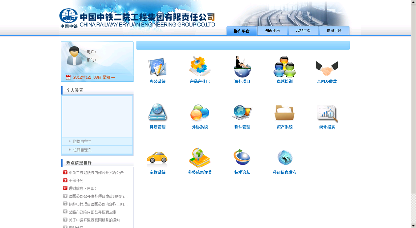 • 中鐵二院企業(yè)內(nèi)部門戶