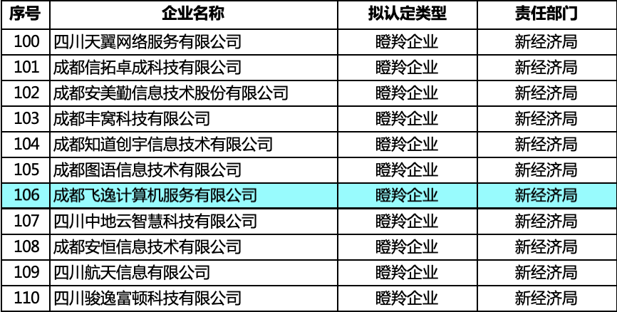 成都飛逸計算機服務(wù)有限公司,成功入選2020年第一批“成都高新區(qū)瞪羚企業(yè)”,由中共成都高新區(qū)工委和成都高新區(qū)管委會共同頒發(fā)授牌。