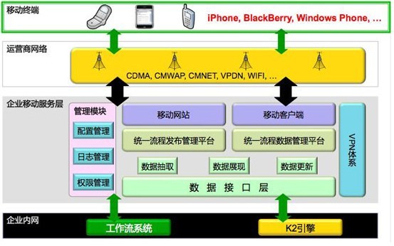 K2移動(dòng)審批解決方案框架圖: