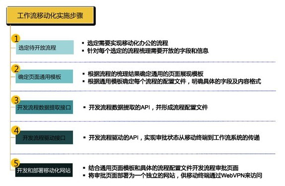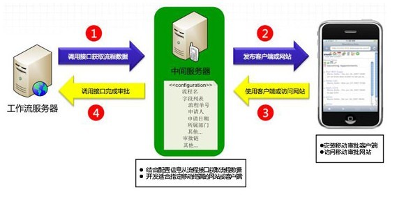 通過(guò)流程API的開(kāi)放,實(shí)現(xiàn)流程數(shù)據(jù)的抽取及審批狀態(tài)從移動(dòng)終端到工作流系統(tǒng)的傳遞