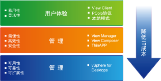 通過(guò)使用VMware View可以為用戶(hù)架構(gòu)一個(gè)桌面數(shù)據(jù)中心,通過(guò)VMware服務(wù)器虛擬化技術(shù)為企業(yè)每個(gè)用戶(hù)創(chuàng)建單獨(dú)的桌面,并依托VMware高效VMware服務(wù)器虛擬化是一種將硬件轉(zhuǎn)換為軟件的技術(shù),利用虛擬化技術(shù), 的傳輸協(xié)議PCoIP為用戶(hù)帶來(lái)與傳統(tǒng)PC機(jī)一致的用戶(hù)體驗(yàn)。